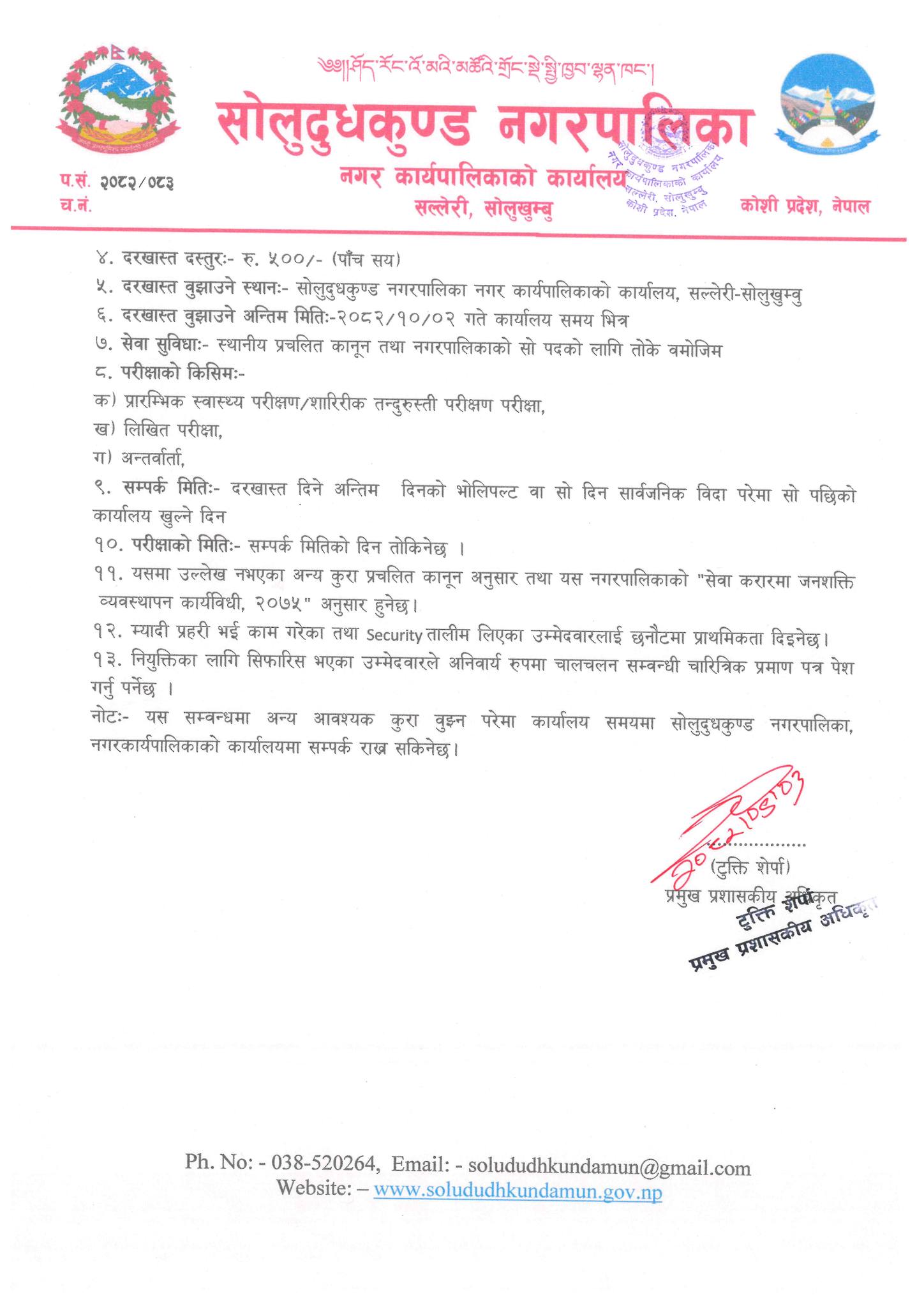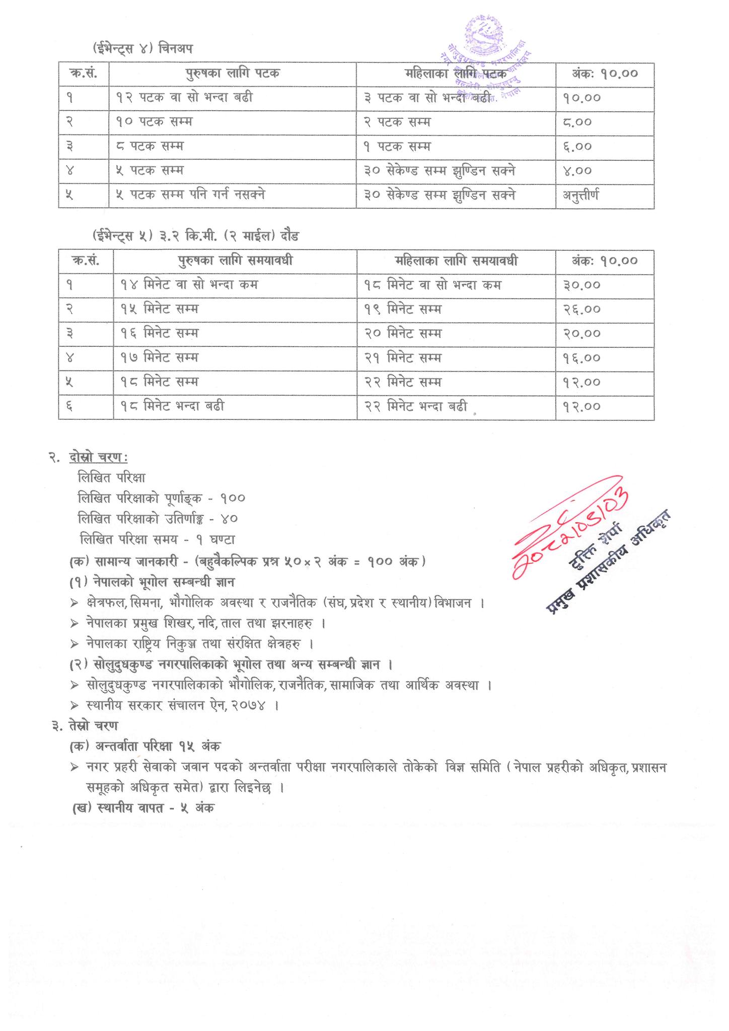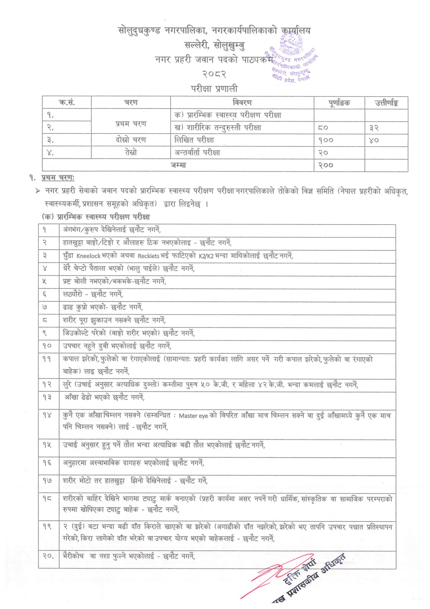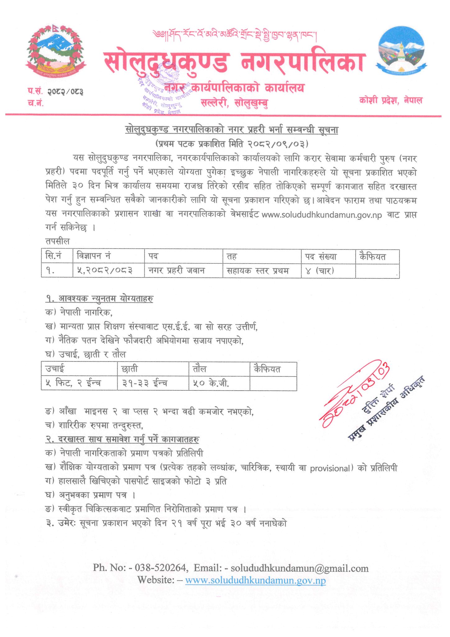 नगर प्रहरी भर्ना सम्बन्धी सोलुदुधकुण्ड नगरपालिकाको सूचना ।