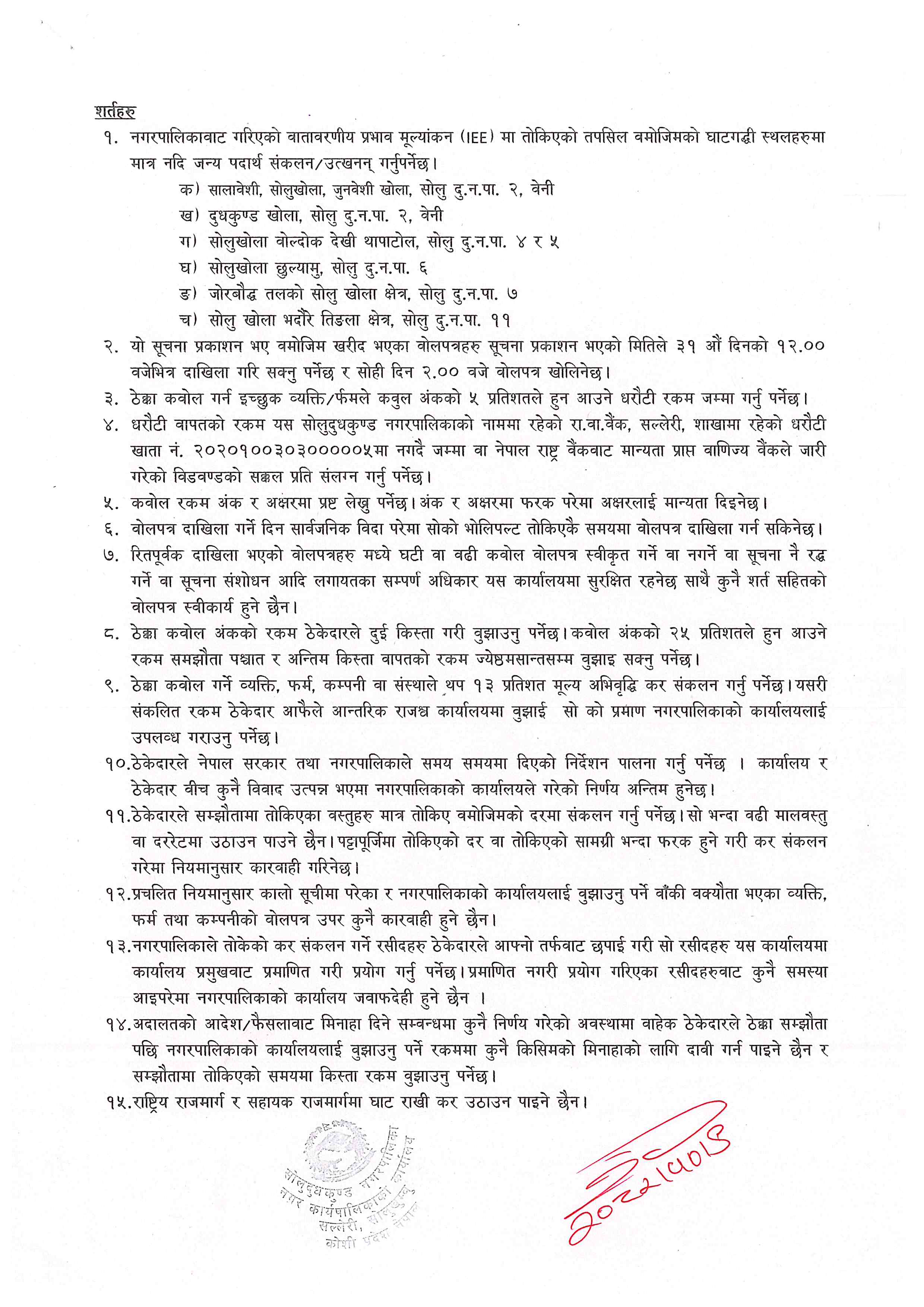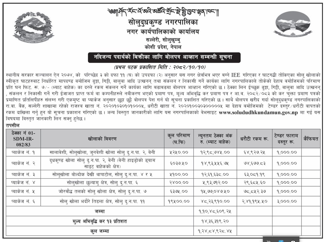 » नदिजन्य पदार्थको बिक्रीका लागि बोलपत्र आव्हान सम्बन्धी सूचना ।
