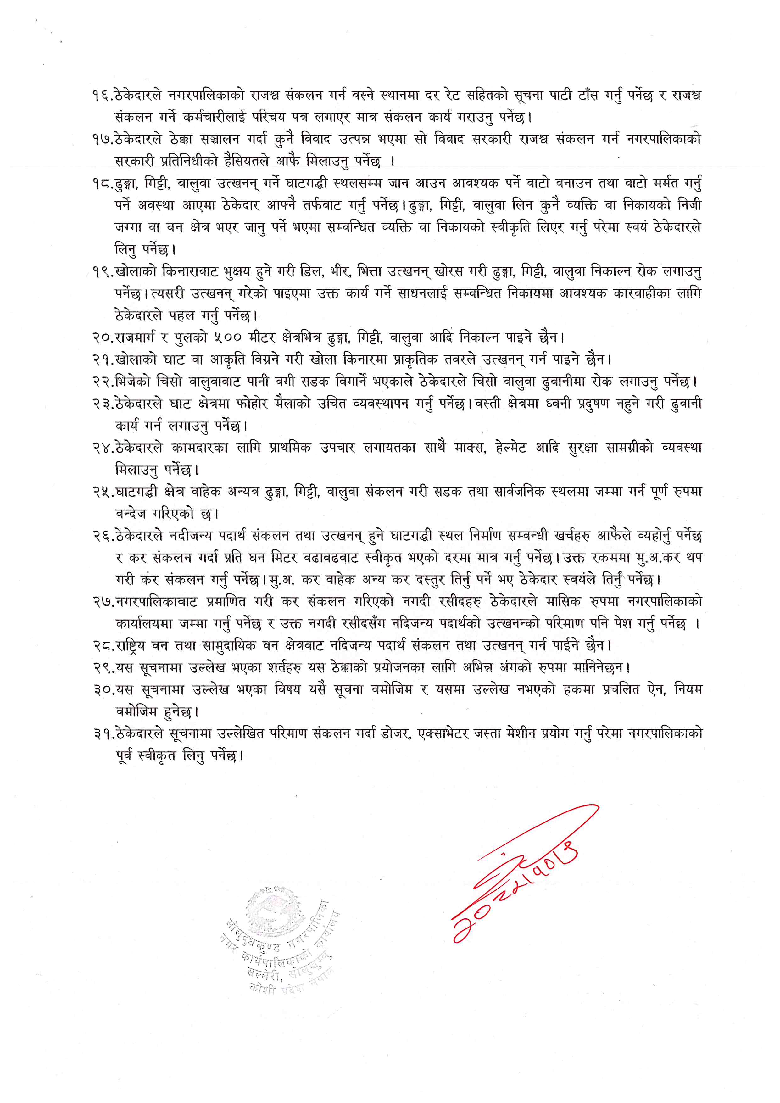 नगरपालिकाका निर्णयहरु