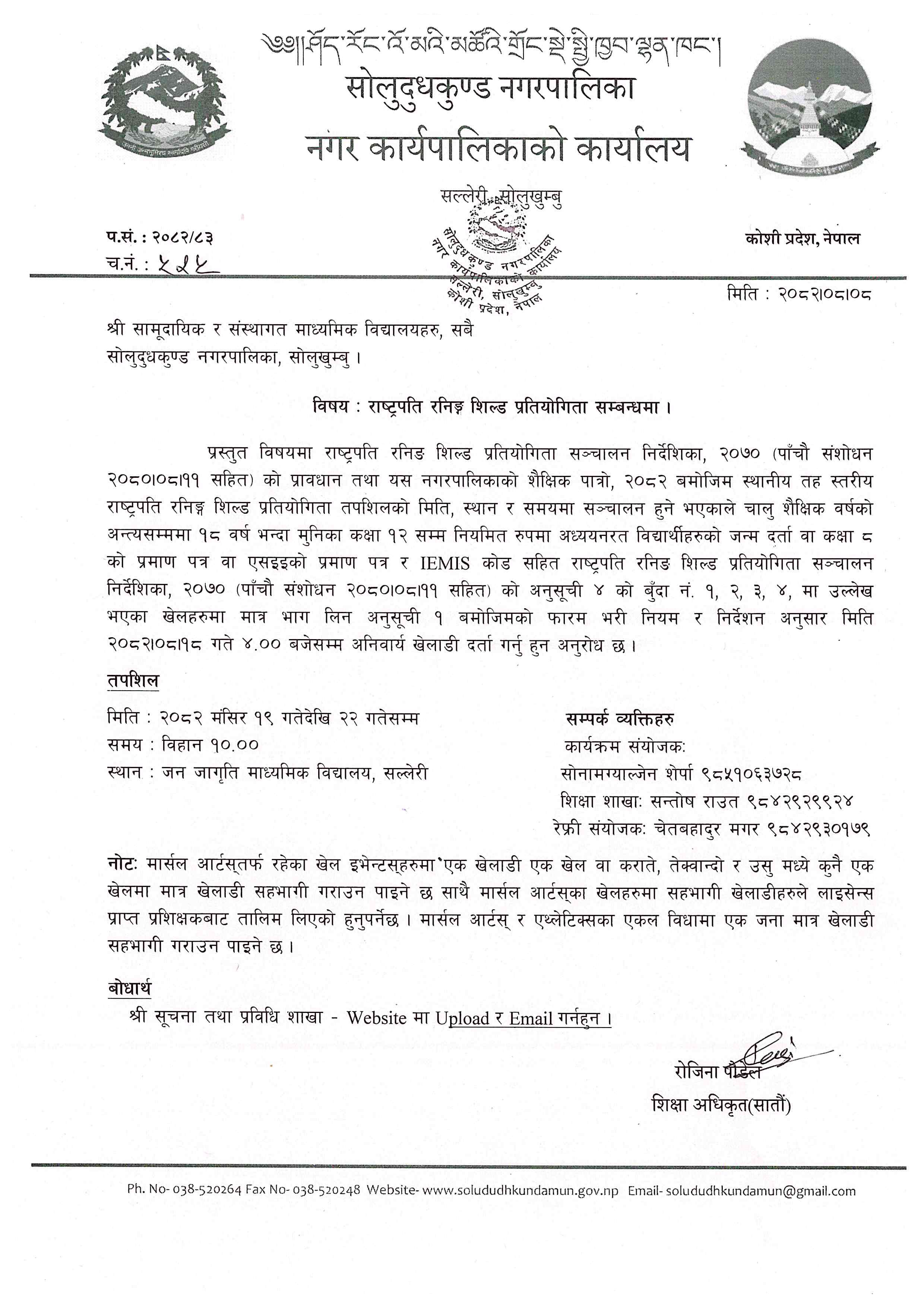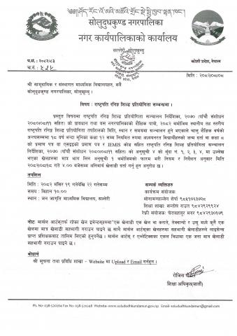 सोलुदुधकुण्ड नगरपालिकाद्वारा आयोजनाहुने स्थानीय तह स्तरीय राष्ट्रपति रनिङ्ग शिल्ड प्रतियोगिता सम्बन्धमा ।