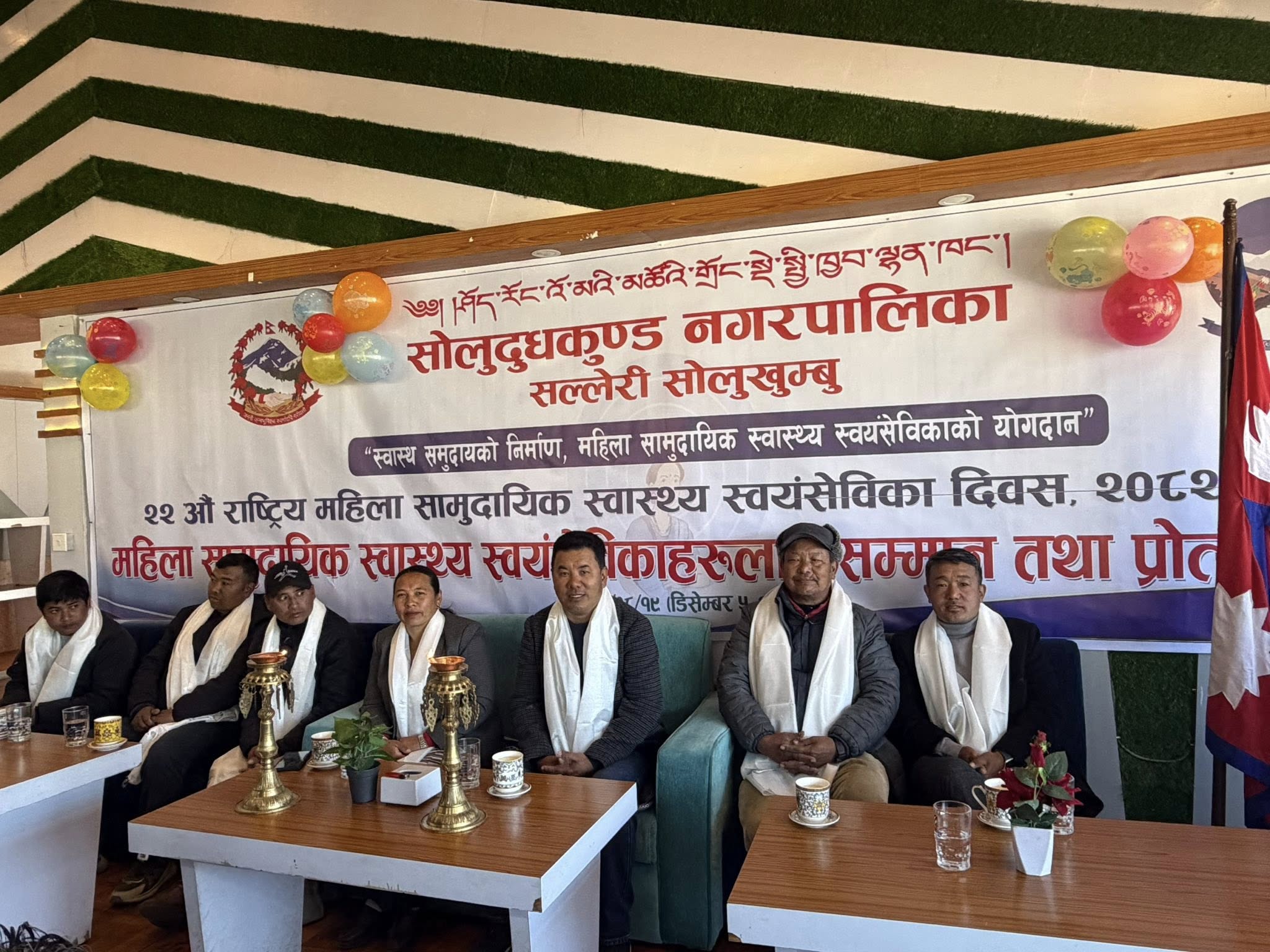 सोलुदुधकुण्ड नगरपालिका प्रमुख श्री नाम्गेल जाङबु शेर्पाले देशभरका महिला सामुदायिक स्वास्थ्य स्वयंसेविकाप्रति सम्मान व्यक्त गर्दै समुदायस्तरमा स्वास्थ्य सेवा प्रवद्र्धनमा उनीहरूको महत्वपूर्ण योगदान रहेको बताउनुभयो।