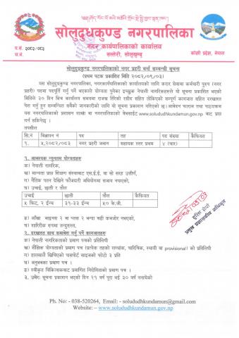 » नगर प्रहरी भर्ना सम्बन्धी सोलुदुधकुण्ड नगरपालिकाको सूचना ।